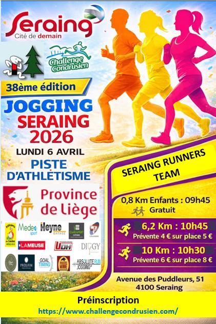 Les Seraing Runners vous invite à la 38e édition du Jogging de Seraing. Ce lundi 6 avril, rendez-vous sur la piste d’athlétisme (avenue des Puddleurs, 51 à Seraing) dès 10h30 […]