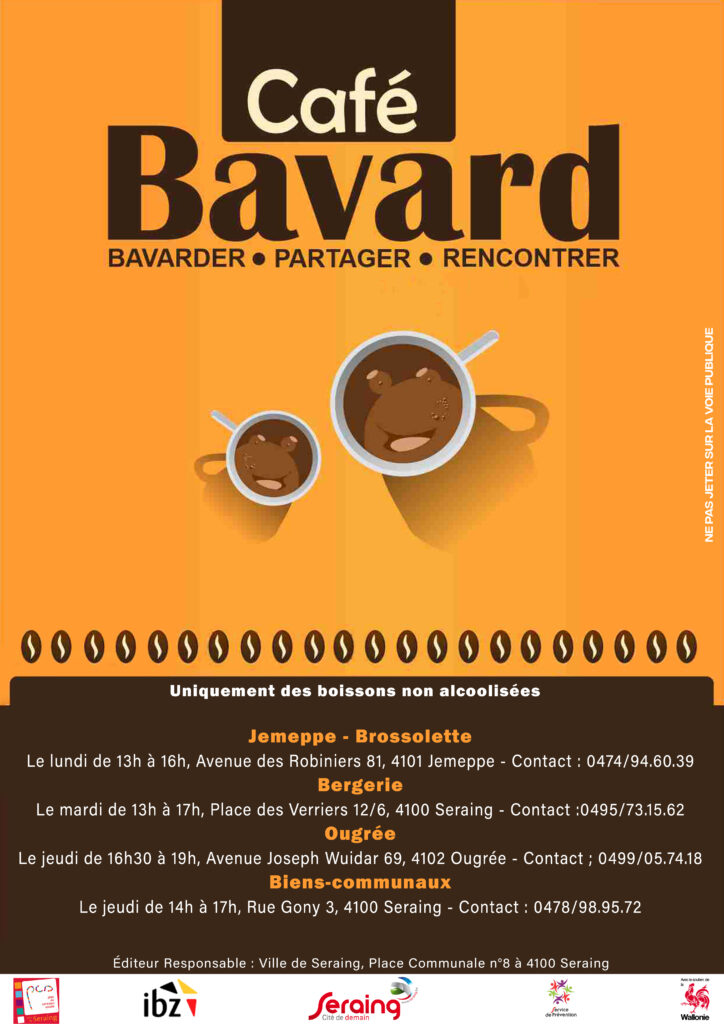 Depuis 2013, la Ville de Seraing a mis en place plusieurs Cafés Bavards sur le territoire. Un lieu de rassemblement, sans vente d’alcool et où l’accent est plutôt mis sur la convivialité, la rencontre et le partage.