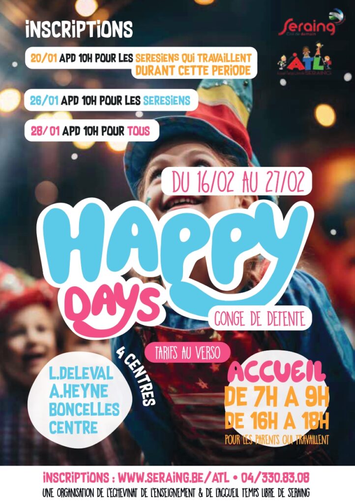 Bonne nouvelle ! Une nouvelle session d’Happy Days est prévue du 16 au 27 février prochains.