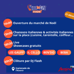 Ne manquez pas cette occasion unique de célébrer les fêtes de fin d’année dans une ambiance conviviale et festive tout en soutenant une cause importante. Rendez-vous ce mardi sur l’esplanade de l’Avenir pour le début d’une semaine riche en émotions !